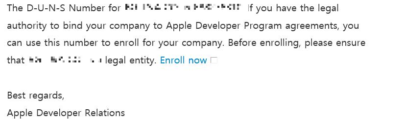 입력한 이메일에서 전달받은 메일이에요! 해당 D-U-N-S 번호를 사용하면 됩니다~